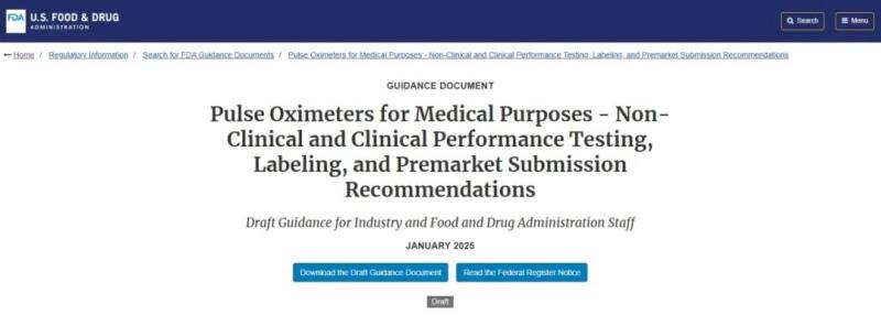 近日,FDA發(fā)布了FDA發(fā)布了針對脈搏血氧儀的最新指南草案。該草案定稿后,將取代2013年版脈搏血氧儀指南。