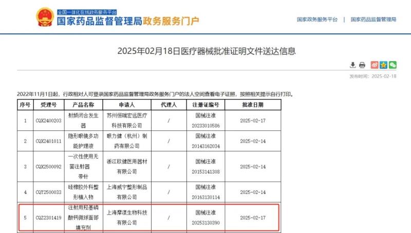 據悉,該材料在國外醫美領域已有使用,但在我國一直未有完全合規的相關產品獲批上市。而此次“注射用羥基磷酸鈣微球面部填充劑”的獲批,不僅填補了這一空白,也為醫美行業帶來了新的技術和產品選擇。