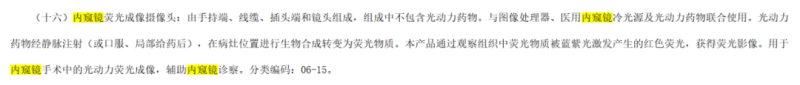 根據《2023年第一次醫療器械產品分類界定結果匯總》《2023年第三次醫療器械產品分類界定結果匯總》, 內窺鏡熒光成像攝像頭和內窺鏡攝像頭為“建議按照第二類醫療器械管理的產品”,可以單獨作為醫療器械產品注冊,分類編碼為06-15