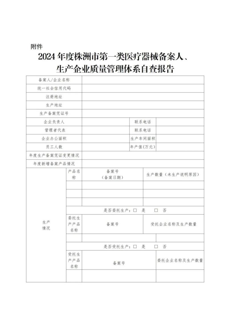 近日,株洲市市場監督管理局發布通知稱,全市范圍內第一類醫療器械備案人、生產企業應當于2025年3月31日前向株洲市市場監督管理局提交自查報告。