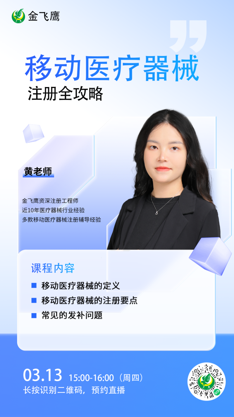 金飛鷹直播培訓簡介 金飛鷹直播培訓,是每周一次的固定培訓欄目,優選金飛鷹國內外資深注冊/項目老師定期為大家講解醫療器械注冊相關知識,解答大家在醫療器械注冊過程中的諸多疑問。 此前我們已為大家帶來新版醫療器械生物學評價標準、新版醫療器械風險管理標準、醫療器械軟件注冊、醫療器械質量管理體系提升技巧等共計114次線上培訓課程,有興趣的可點擊視頻號直播回放進行查看~另外大家也一定很關注接下來的培訓主題,相關培訓預告我們會陸續添加至視頻號,請大家持續關注哦!