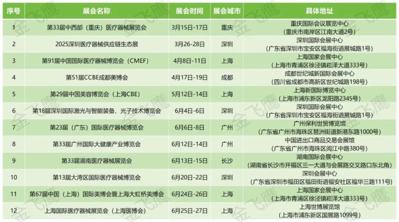 雖然2025年上半年現已將近過半,但是很多展會都是自3月份才陸續開啟,那么接下來還有哪些重要展會呢?本期文章我們就給大家盤點一下2025上半年的部分醫療器械行業展會,主要覆蓋深圳、廣州、上海、成都等城市,不知屏幕前的你是否有參展安排呢?準備參加哪些展會?歡迎在文末留言哦~