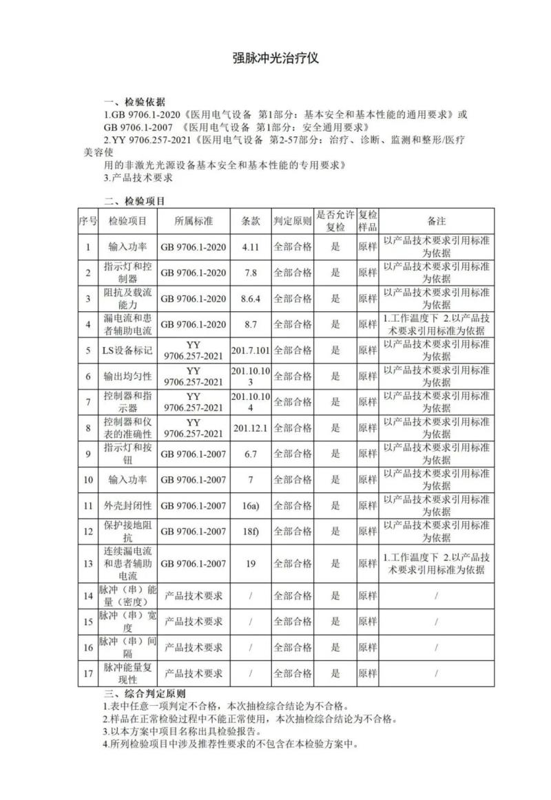 3月26日,國家藥監局官網發布《2025年國家醫療器械抽檢產品檢驗方案,其中強脈沖光