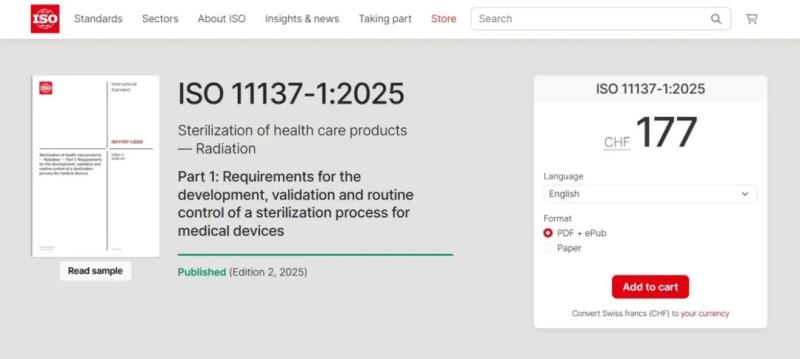 近日,國際標準化組織發布了有關醫療保健產品輻射滅菌的新版標準ISO 11137-1:2025 Sterilization of health care products — Radiation — Part 1: Requirements for the development, validation and routine control of a sterilization process for medical devices,通過查看ISO官網發布的標準樣本,我們給大家整理了本次標準主要更新內容:
