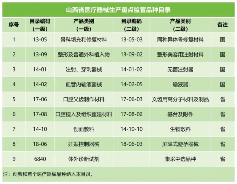 山西藥監局公布9大類醫療器械生產重點監管品種目錄