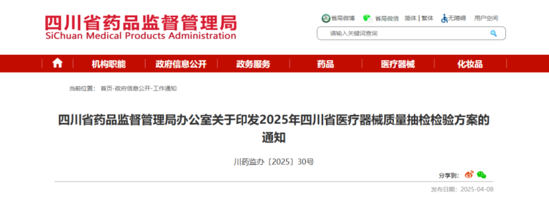 ??2025年四川醫療器械質量抽檢方案出爐,這些產品重點檢查!