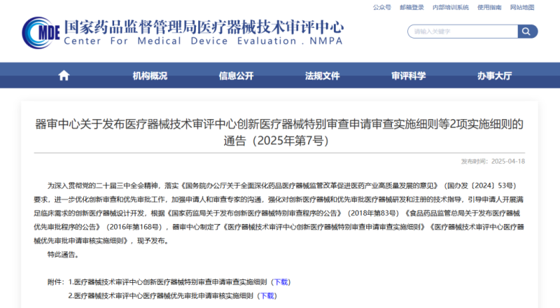 4月18日,國家藥監局器審中心發布《醫療器械技術審評中心創新醫療器械特別審查申請審查實施細則》《醫療器械技術審評中心醫療器械優先審批申請審核實施細則》2項實施細則,并宣布自發布之日起實施。我們將其中《醫療器械技術審評中心創新醫療器械特別審查申請審查實施細則》正文內容轉載如下: