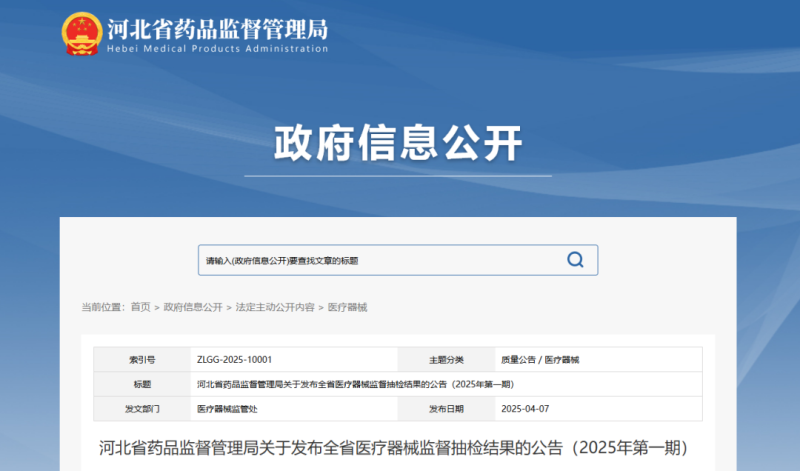 近日,河北省藥監局發布《全省醫療器械監督抽檢結果的公告(2025年第一期)》,其中提到,該局組織對2024年全省生產、經營和使用等環節醫療器械進行了質量監督抽檢,共發現14批次產品不符合標準規定,包括一次性使用鼻氧管、醫用外科口罩、電動輪椅車、微量注射泵等,具體明細如下: