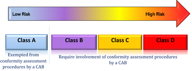 馬來西亞采用基于風(fēng)險(xiǎn)的分類系統(tǒng),將醫(yī)療器械分為 A、B、C、D 四個(gè)等級(jí):