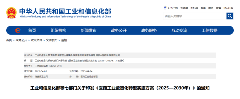 近日,國家工業和信息化部、商務部、衛健委等七部門發布《醫藥工業數智化轉型實施方案(2025-2030年)》(以下簡稱《實施方案》),以深入推進人工智能賦能新型工業化,推動新一代信息技術與醫藥產業鏈深度融合,加快推進醫藥工業數智化轉型,進一步提高企業核心競爭力,提升藥品質量安全水平,增強供應保障能力,培育和發展新質生產力,促進醫藥工業高質量發展。