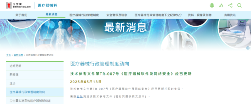 近日,香港衛(wèi)生署醫(yī)療器械科對TR-007號《醫(yī)療器械軟件及網(wǎng)絡(luò)安全》技術(shù)參考文件進行更新(2023版的修訂版),本次修訂內(nèi)容如下: