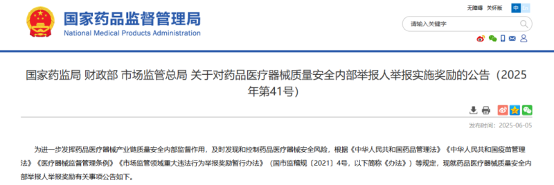 一、藥品醫療器械研制、生產、經營企業和使用單位,藥品醫療器械網絡交易第三方平臺提供者以及其他組織(以下統稱企業及相關單位)的內部員工、相關知情人,向藥品監督管理部門實名舉報藥品醫療器械質量安全重大違法行為,藥品監督管理部門實施獎勵的,適用本公告。