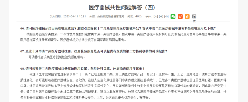 如題,根據安徽省藥監局的答復,依據《醫療器械監督管理條例》第二十一條“已注冊的第二類、第三類醫療器械產品,其設計、原材料、生產工藝、適用范圍、使用方法等發生實質性變化,有可能影響該醫療器械安全、有效的,注冊人應當向原注冊部門申請辦理變更注冊手續”,已取得二類醫療器械注冊證的醫用口罩、醫用外科口罩,外層改用印花無紡布至少涉及設計和原材料發生實質性變化,且印花所用染料生物安全性及印染面是否影響口罩性能均需驗證,因此需辦理變更注冊。
