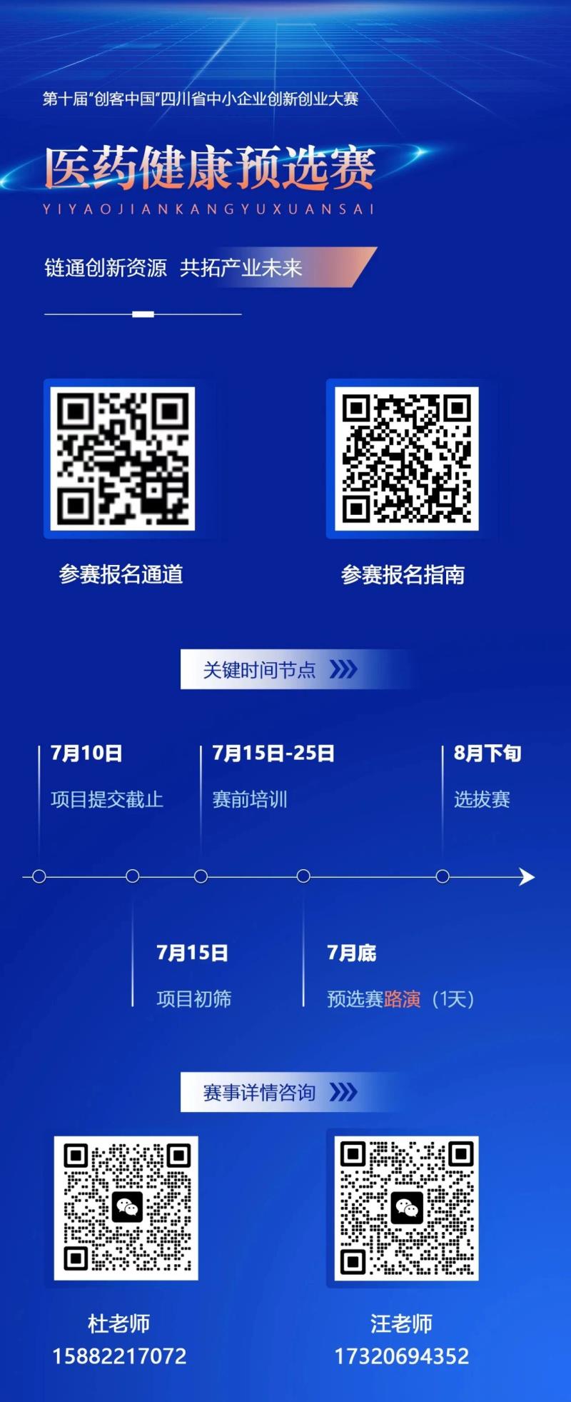 上月,四川省經信廳發布《關于舉辦第十屆“創客中國”四川省中小企業創新創業大賽的預通知》,如今,第十屆“創客中國”四川省中小企業創新創業大賽“醫藥健康”專題預選賽(包括醫藥健康專場及數據賦能專場)報名即將截止,金飛鷹特此提醒還未報名的企業趕緊報名!與此同時,我們還轉載了相關賽事指南,以供企業查閱參考?