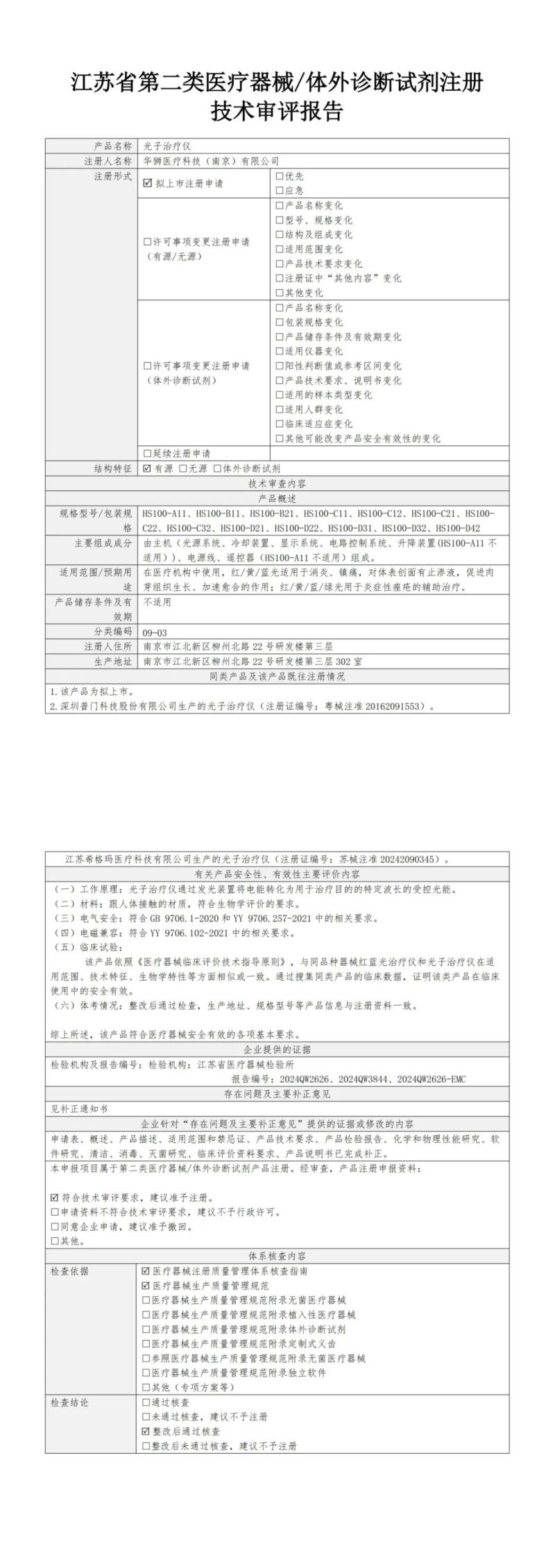 7月12日,江蘇省藥監局公布了2025年6月批準注冊的重組膠原蛋白噴劑敷料、明火艾灸儀、立體動態干擾電治療儀、定制式增材制造截骨導板、穿戴式動態心電記錄儀、運動氣壓治療系統、眼底照相機、掌上超聲波電刺激治療儀、光子治療儀、磁振熱治療儀等151個醫療器械產品目錄,同時隨附了所有產品的技術審評報告,我們其中“光子治療儀”(預期用途:在醫療機構中使用,紅/黃/藍光適用于消炎、鎮痛,對體表創面有止滲液,促進肉芽組織生長、加速愈合的作用;紅/黃/藍/綠光用于炎癥性痤瘡的輔助治療)的技術審評報告以圖片形式轉載如下: