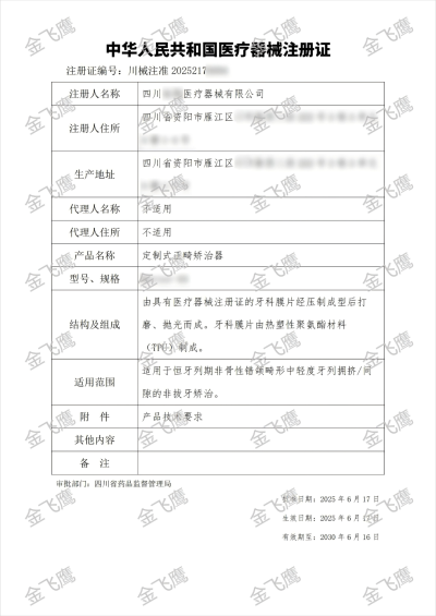 近日,金飛鷹輔導四川及廣東兩家企業成功取得【正畸矯治器】的注冊證,老規矩,本期文章就跟大家分享一下此類產品注冊的相關事項。