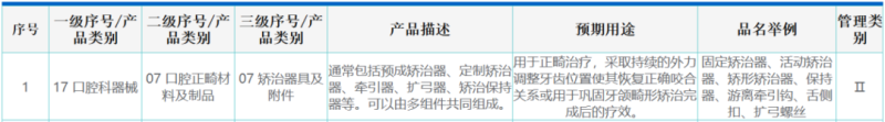 正畸矯治器一般通過計算機三維重建技術建立牙齒三維數字化模型,后經軟件數字化模擬矯治設計,使用正畸矯治器用膜片在光固化快速成型(DLP、SLA等)技術加工的牙模(母模)上熱壓成型。其預期用途為“用于正畸治療,采取持續的外力調整牙齒位置使其恢復正確咬合關系或用于鞏固牙頜畸形矯治完成后的療效。”在我國作為第二類醫療器械管理,分類編碼17-07-07。