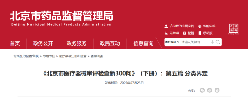 自今年6月以來,北京市醫療器械審評檢查中心持續推出了《北京市醫療器械審評檢查新300問》(下冊),此前我們已轉載了有源產品質量管理體系創新醫療器械的相關內容,本期文章我們繼續轉載有關“分類界定”6個咨詢問答,大家別忘收藏備用哦圖片以后若遇到類似問題,只需查一下就能找到答案了~