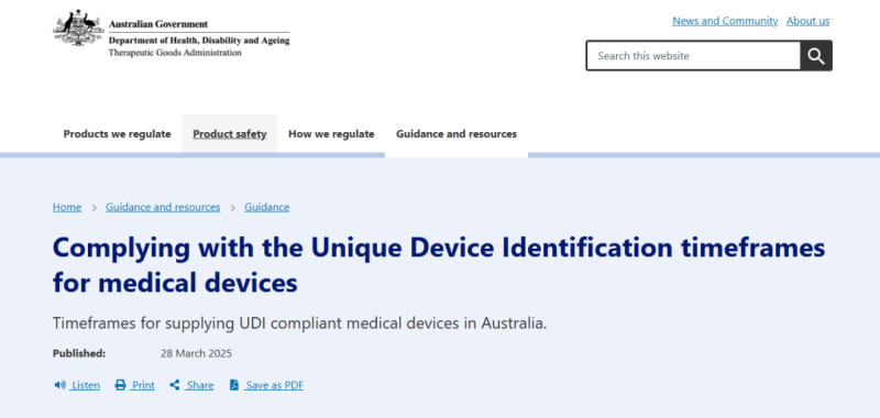 TGA在此前發布的Complying with the Unique Device Identification timeframes for medical devices中提到,TGA將在5年內引入UDI:首先是高風險醫療器械的合規性,然后是低風險設備的合規性。