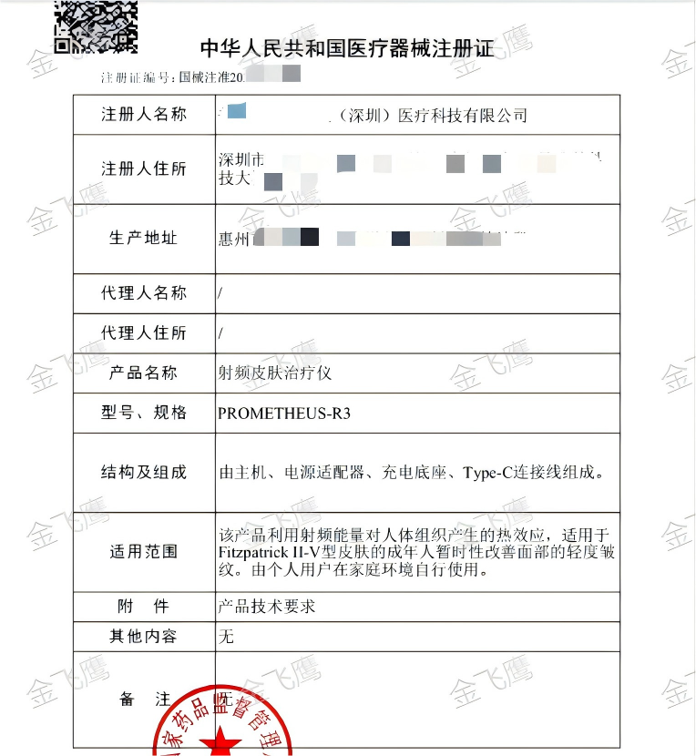 近日,金飛鷹輔導廣東企業成功取得【射頻皮膚治療儀】的注冊證,并且是業內第一張手持式射頻皮膚治療儀(集射頻、微電流、光,于一體)注冊證。老規矩,本期文章就跟大家分享一下此類產品注冊的相關事項。